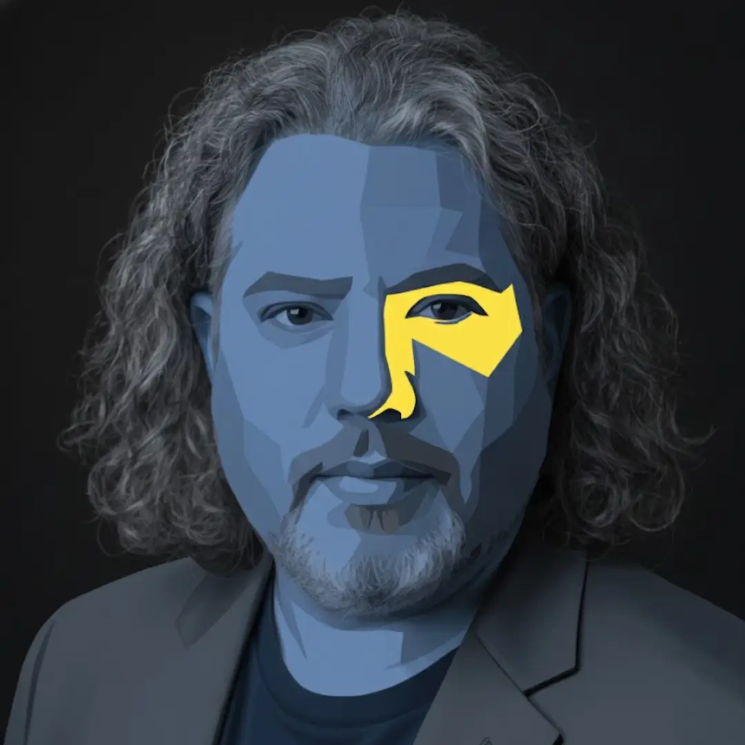 «Retrato fotográfico conceptual y minimalista que reinterpreta la estética vectorial. Una silueta humana estilizada construida con planos sólidos y opacos de azul corporativo mate, absolutamente sin degradados. Líneas de corte limpias, nítidas y arquitectónicas definen la forma. Un acento de luz amarilla sólida y geométrica forma una expresión abstracta y amigable, cortando la oscuridad. Composición geométrica rigurosa, iluminación de estudio dramática y de alto contraste que enfatiza la planitud de los materiales físicos. 8k, photorealistic, high contrast, dark environment, –ar 9:16, –style raw»